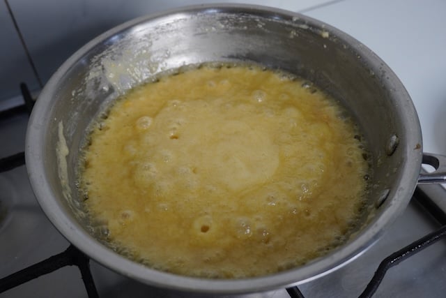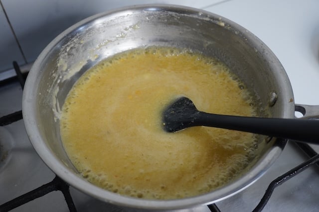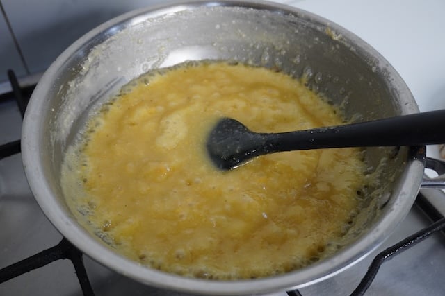 6)The sugar will start to melt and the mixture will get slightly runny first. As you keep cooking on high the mixture will start to thicken up.