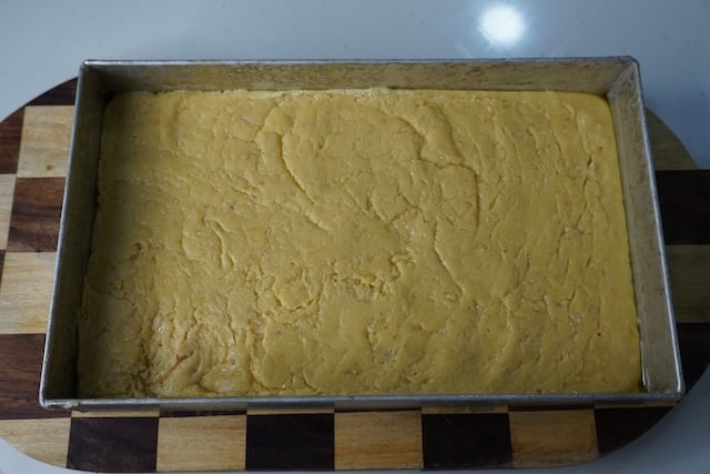 - Grease the tray generously with ghee so it un-mould easily. Or you can line with parchment paper.