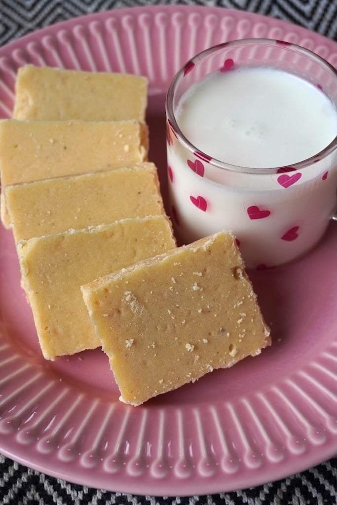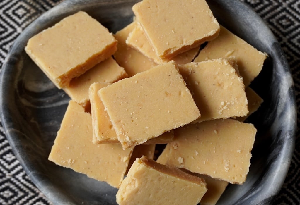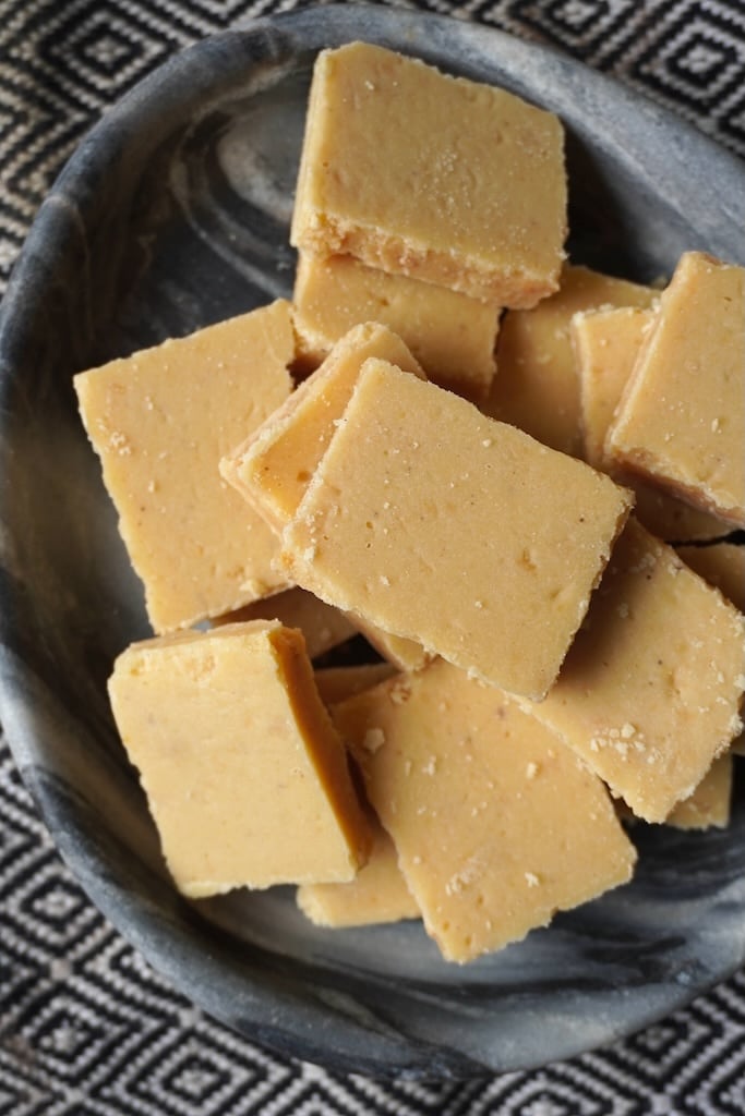 - Allow the barfi to set just for 5 minutes before cutting into squares.