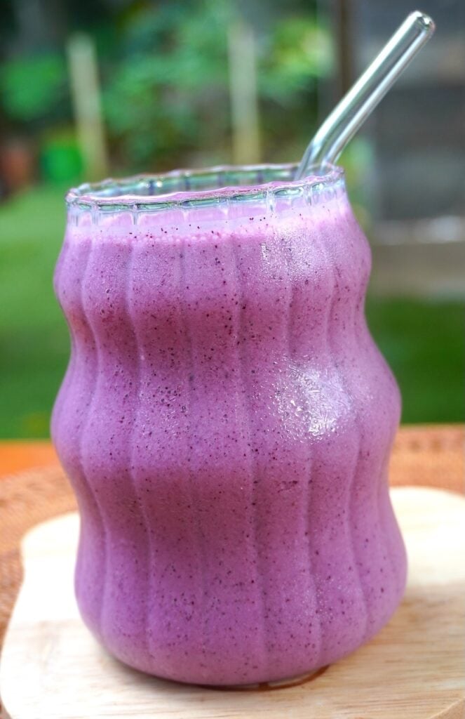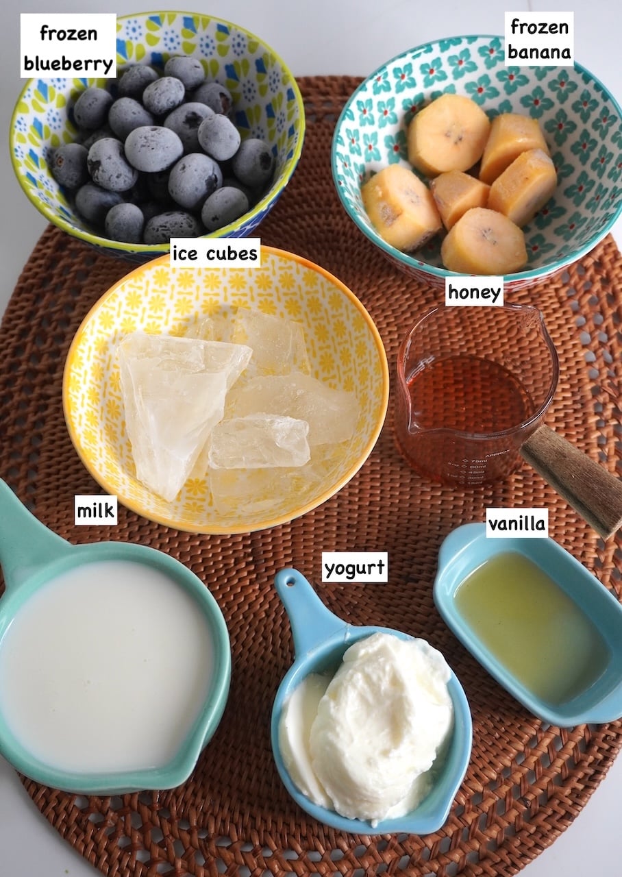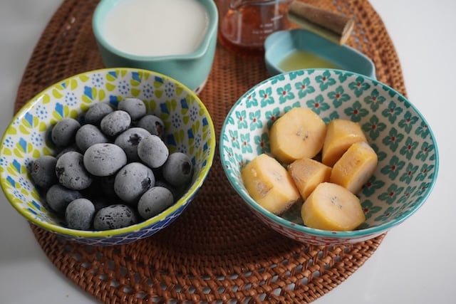 Every time I see fresh blueberries on the market, I pick few packs of them for making smoothie. As soon as I come home, I give them a good wash and freeze them immediately. Same with bananas, every time I see ripe bananas, I freeze them for using later. This way I can make smoothies in a matter of minutes.