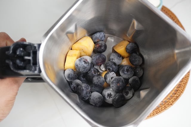 2)Take frozen banana and blueberries in a blender.