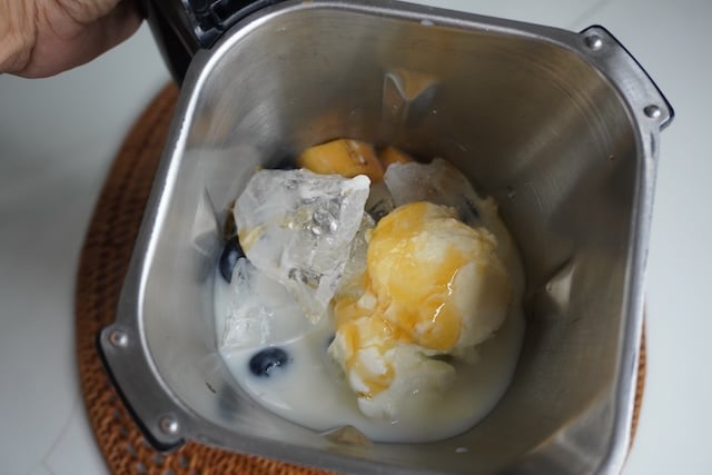 7)Now that all the ingredients is added into the blender, we are going to blend till creamy and smooth.