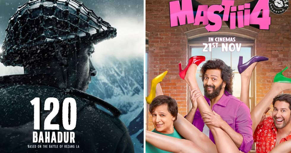 Farhan Akhtar’s much-anticipated military drama 120 Bahadur and the adult comedy franchise film Mastiii 4 arrived in cinemas on November 21, but both titles opened to underwhelming numbers. Despite belonging to completely different genres and target groups, the two films posted nearly identical day-one collections, signalling a sluggish start to the weekend. 120 Bahadur, featuring...