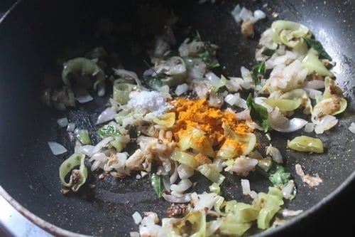 5)Add in salt and turmeric powder and mix well.