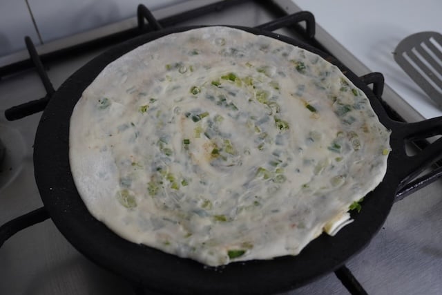 One of the best things about making this pancake is the irresistible aroma from spring onions sizzling in hot oil which instantly makes you feel hungry.