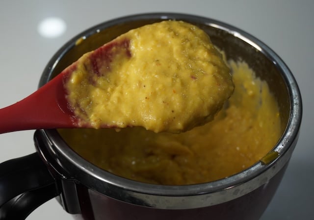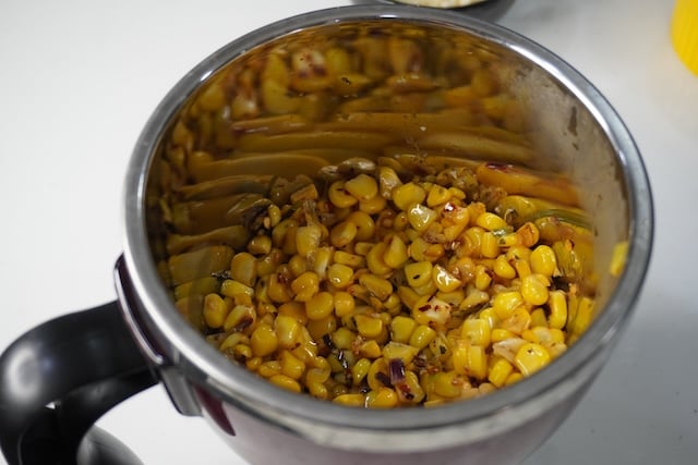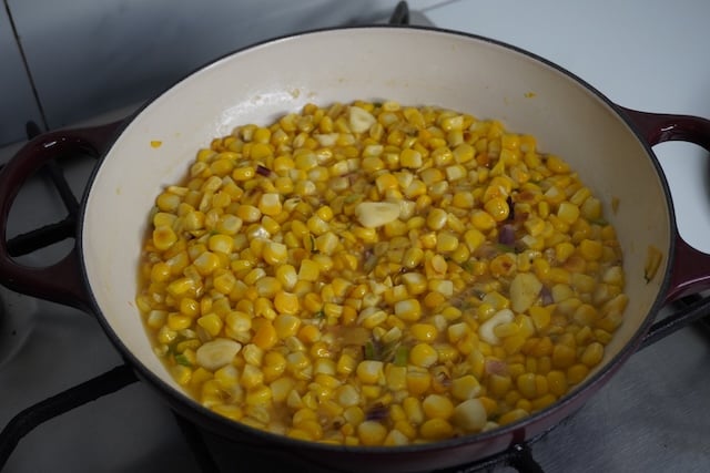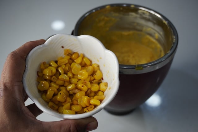 9)Take it off the heat, remove ¼ cup of the corn mixture in a separate bowl which we will add in the end.