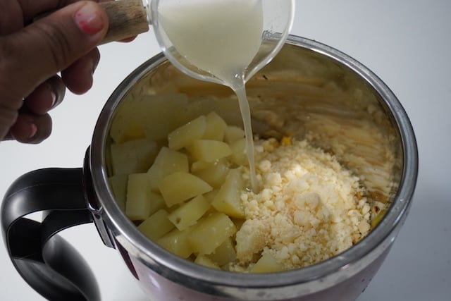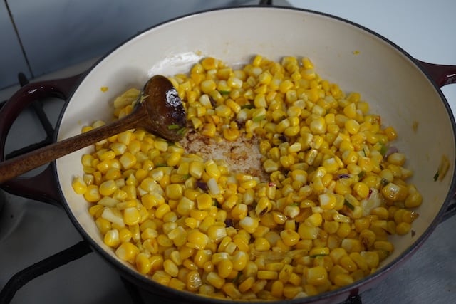If fresh sweet corn is not in season, you can use frozen corn. Also when adding potatoes, never add too much, else the sauce may get gloopy and you might need to thin it down with more water.