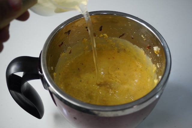 5)Now pour in ½ cup of water, scrape the pot well to take any charred bits from the pan.