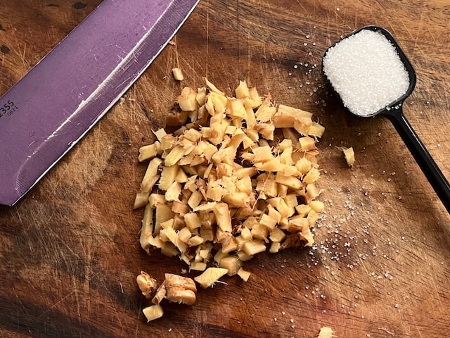 Chop ginger fresh every time – Always chop ginger fresh daily. For making starter on day 1, you need only 1 tablespoon of ginger. So chop just 1 tablespoon worth alone.
