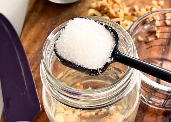 • Sugar – you can use granulated sugar, brown sugar for making ginger bug. I don’t recommend using honey since it naturally antimicrobial, which is why it doesn’t spoil easily. That means it can slow down the process.