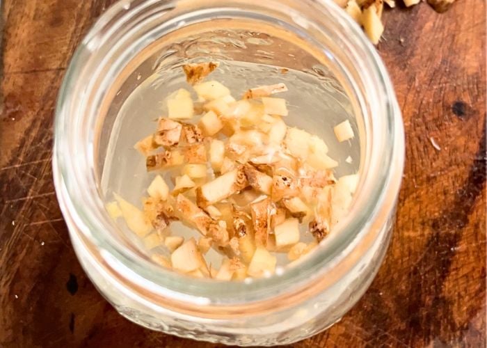 Choosing Ginger – Choose Young, thin-skinned ginger. It ferments faster. But you can use mature ginger also, as long as it’s fresh. You need the skin of the ginger, so don’t peel it. Just rinse lightly to remove dirt and chop or grate it. Because the microbes are present more in the peel of ginger.