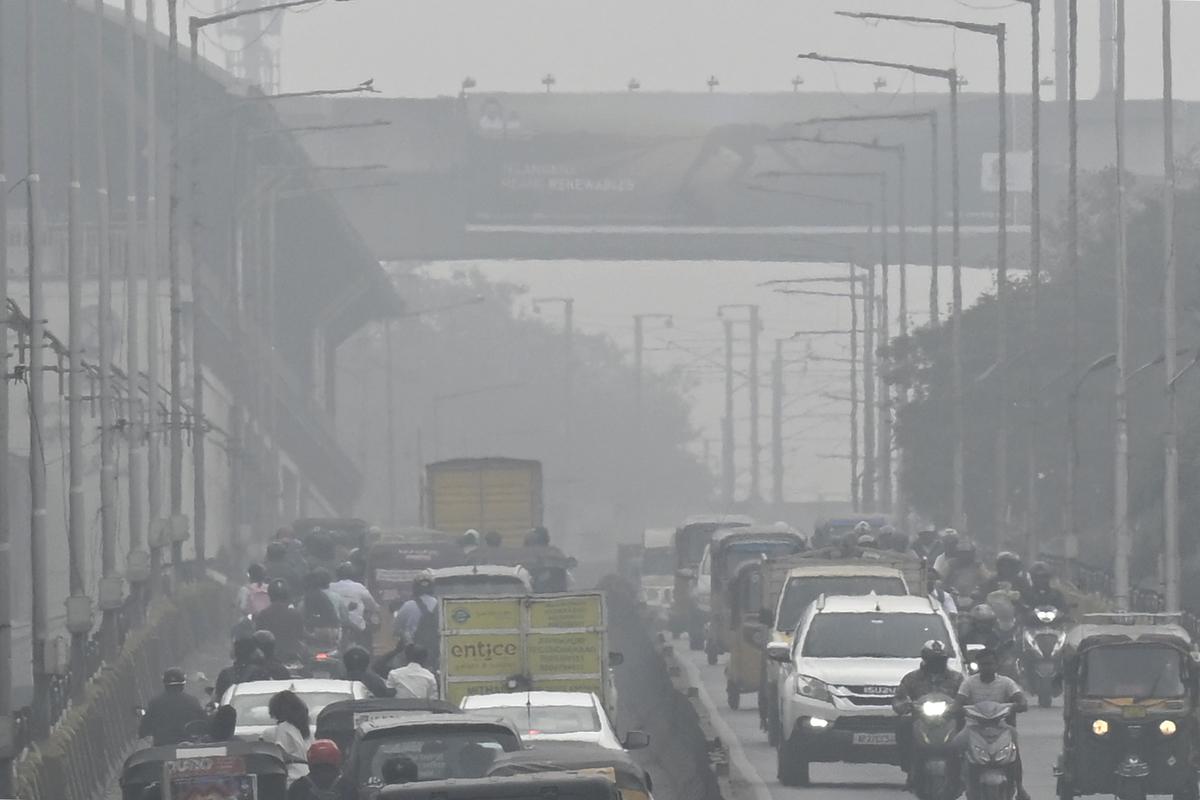 Dense fog masks Hyderabad’s skyline on a winter afternoon, on Thursday (January 1, 2026)