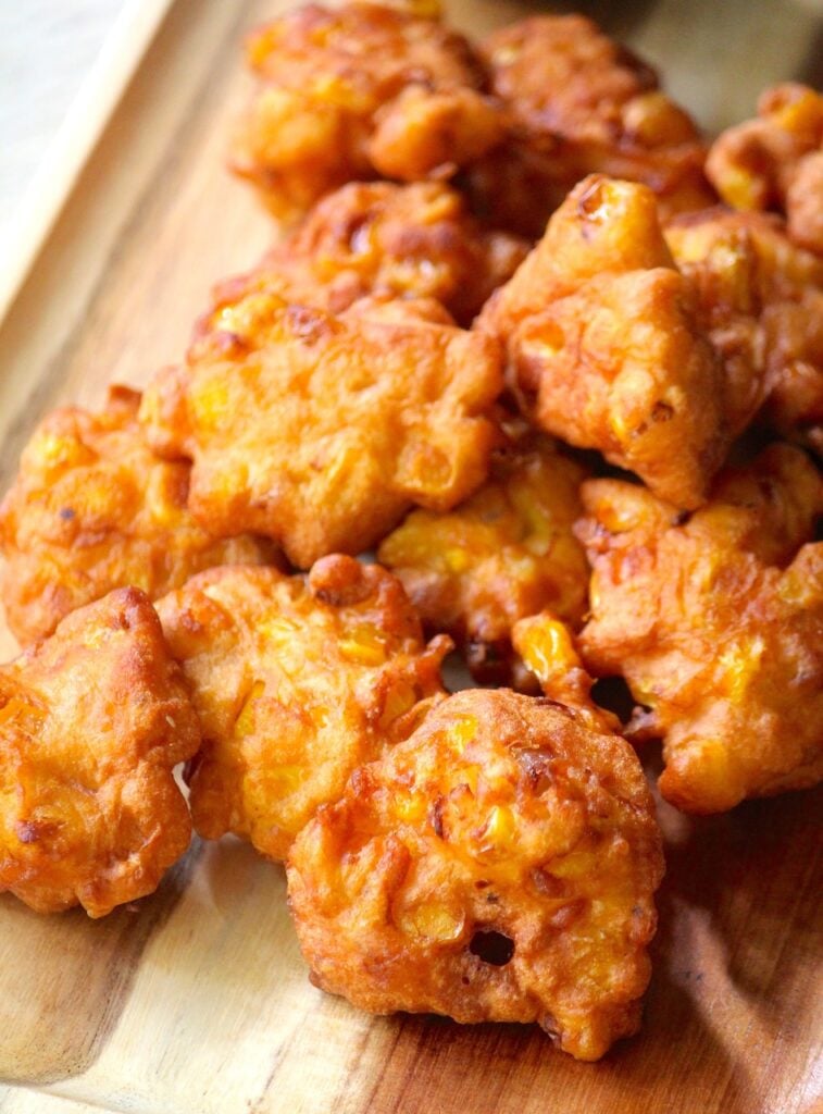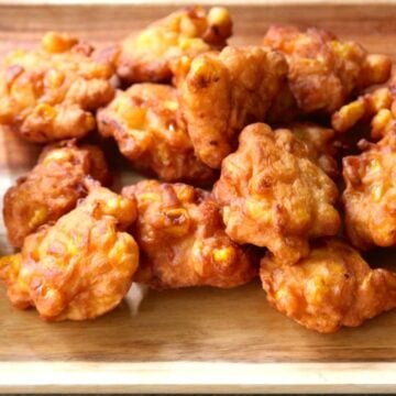 Sweet corn fritters also known as corn nuggets, batter fried sweet corn fritters. It is crispy on the outside and yet soft and fluffy in middle. The batter is made with corn, onions, flour, seasonings, egg, milk and baking powder to make the batter. Check my Potato & Corn Fritters Recipe.