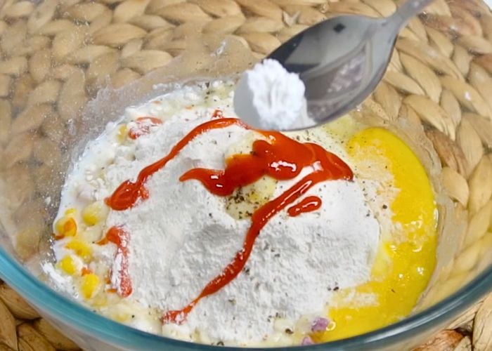 • Egg – egg helps make crispy fritters which helps with binding and create fluffy texture.