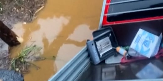 Crashed truck in collapsed bridge after New Zealand rains