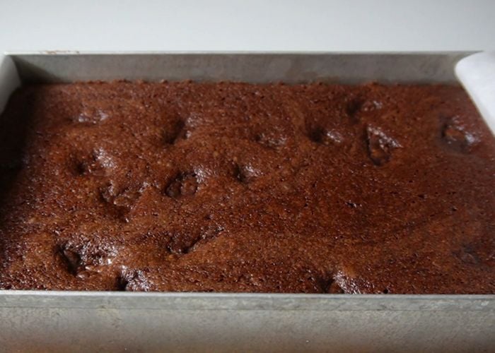 12)Now the brownie is baked. Remove from oven.
