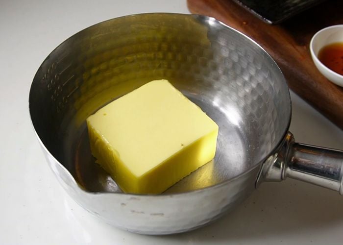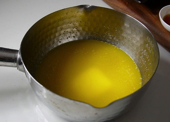 2)Melt it gently over low heat until the butter is completely melted. Remove from heat.