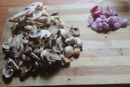 2)Now lets make the filling. Chop onions finely and slice mushrooms thinly.