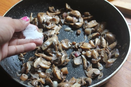 6)Season with salt. You have to add salt after the mushroom is sauted.