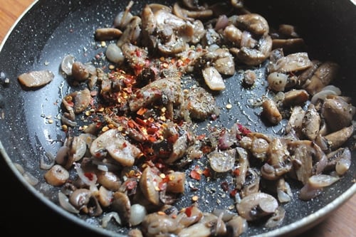 I just used the mushroom filling alone. But you can go further and top with raw sliced bell peppers, onion slices, olives and tomatoes for more filling and tasty toppings. If you are not a fan of mushrooms you can add paneer or chicken instead of mushrooms or check out the other pizza which i have on my blog.